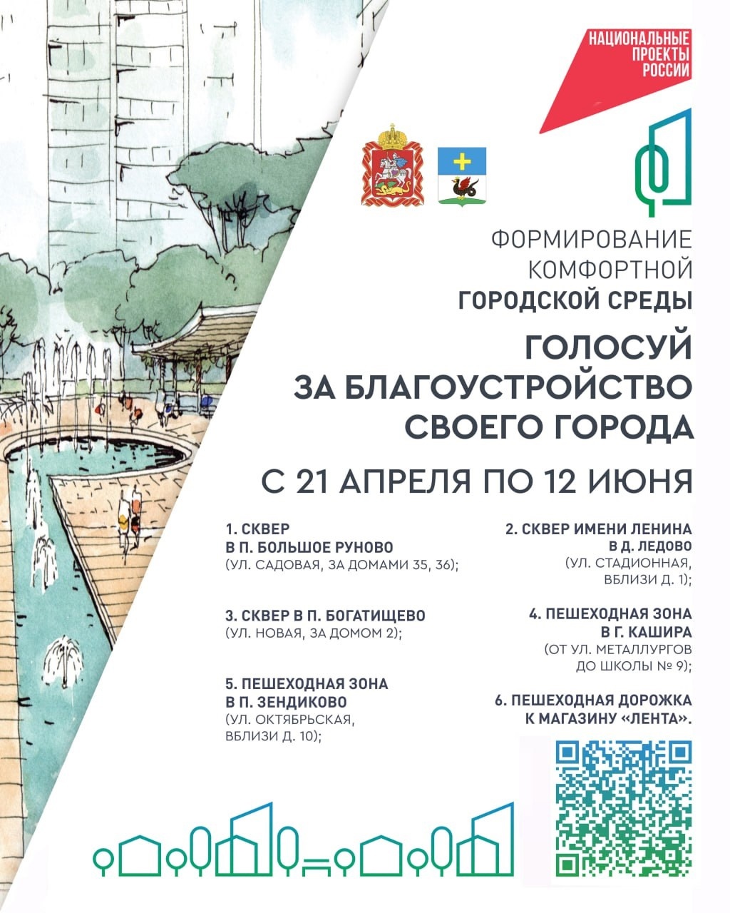 Жители городского округа Кашира могут повлиять на благоустройство своего города. В рамках федерального проекта «Формирование комфортной городской среды», который является частью национального проекта «Инфраструктура для жизни», проводится голосование по выбору общественных пространств для приоритетного благоустройства.
