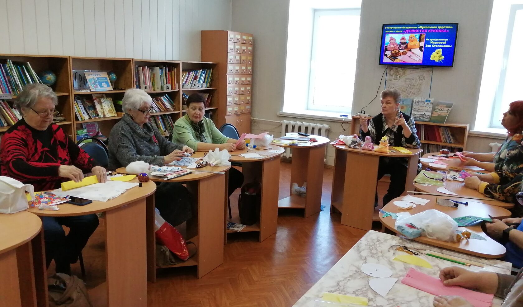 Замечательным подарком участницам творческого объединения стал мастер-класс «Душистая куколка», подготовленный и проведенный Наумовой Зоей. Мастерицы за несколько минут из приготовленных лоскутков сделали милых куколок – упаковки для душистого мыла. Замечательный подарок себе или подруге! Традиционное чаепитие с домашним пирогом – «Муравейником» от опытной мастерицы кондитерских вкуснятин – Галины Захаровой проходило за обсуждением творческих идей. Домой рукодельницы уходили из библиотеки с чудесным весенним настроением и подарком – «душистой куколкой», сделанной своими руками.