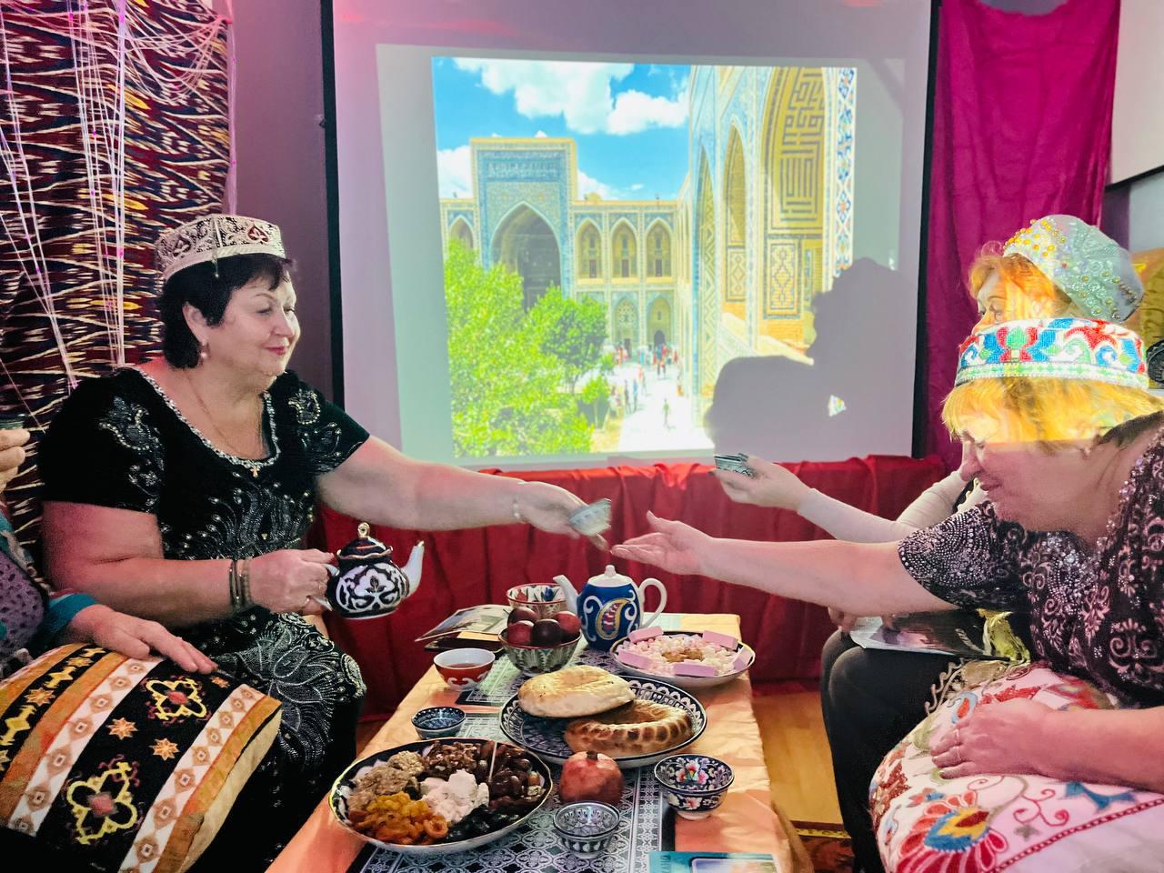 В клубе «Активное долголетие» в Кашире состоялось очередное занятие в рамках цикла занятий "Традиции в истории стран", которое провела инструктор по труду Светлана Свобонас. Оно было посвящено Узбекистану. Во время него Светлана Вячеславовна рассказала много интересных фактов о таких древних городах, как Бухара, Самарканд, Коканд и других, а также традициях Узбекистана в целом. А, чтобы придать этому «путешествию» еще больше колорита, все участницы клуба пришли на занятие в тематических нарядах. Звучала узбекская музыка, были расставлены детали интерьера, связанные с Узбекистаном, на столе было угощение.