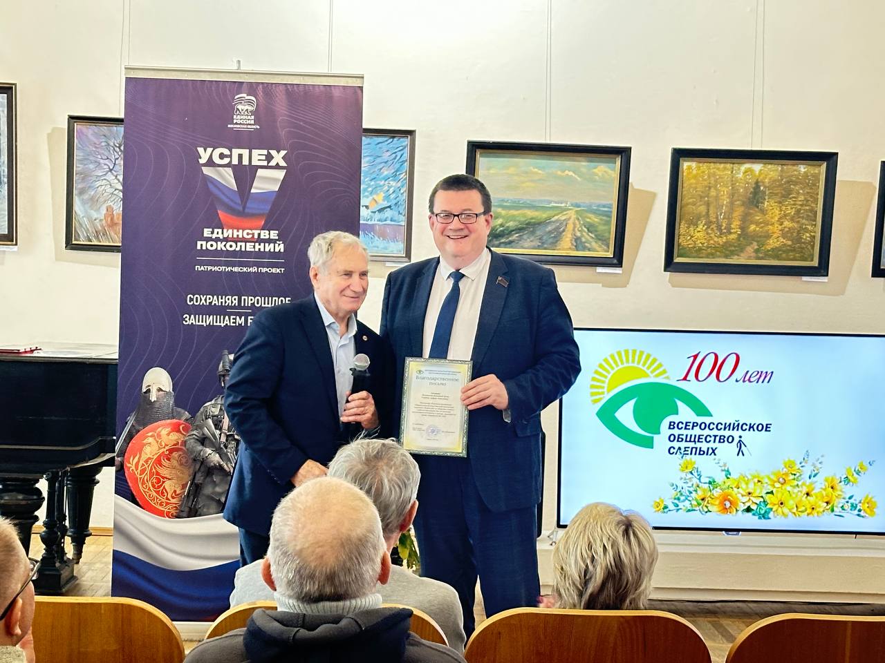 Почетным гостем программы стал депутат Московской областной Думы от фракции «Единая Россия» Андрей Голубев. В честь 100-летнего юбилея Всероссийского общества слепых он вручил Благодарственные письма от комитета Московской областной Думы.