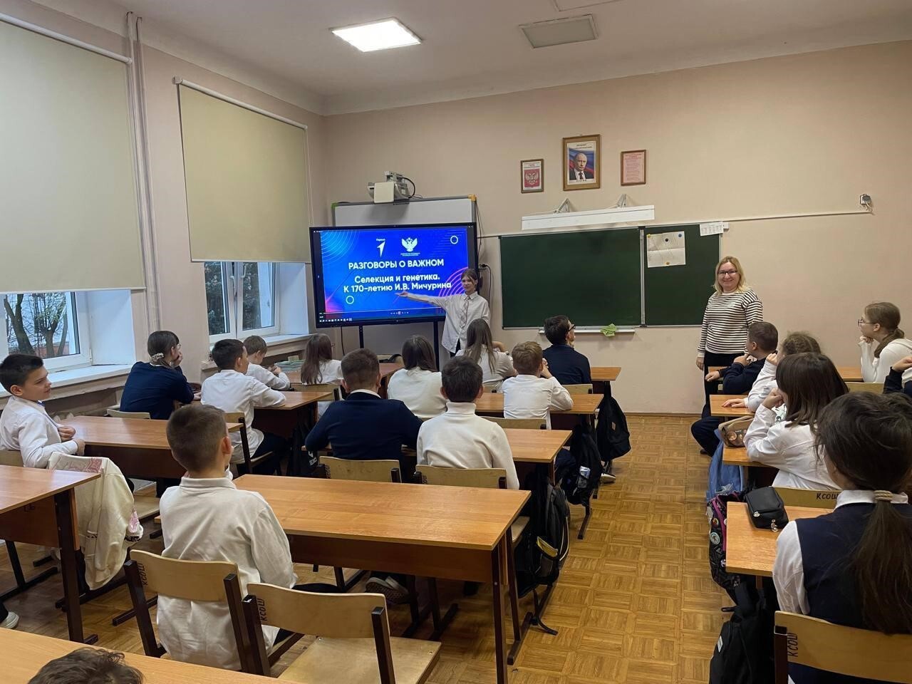В рамках внеурочной деятельности прошли занятия под названием «Разговоры о важном», посвящённые теме «Селекция и генетика» к 170-летию со дня рождения Ивана Владимировича Мичурина. Эти занятия были посвящены выдающемуся учёному и селекционеру, чьи работы оказали значительное влияние на развитие сельского хозяйства в России. Ребята узнали о его новаторских методах, таких как отдалённая гибридизация, и о его вкладе в создание новых сортов плодово-ягодных культур, адаптированных к российскому климату.