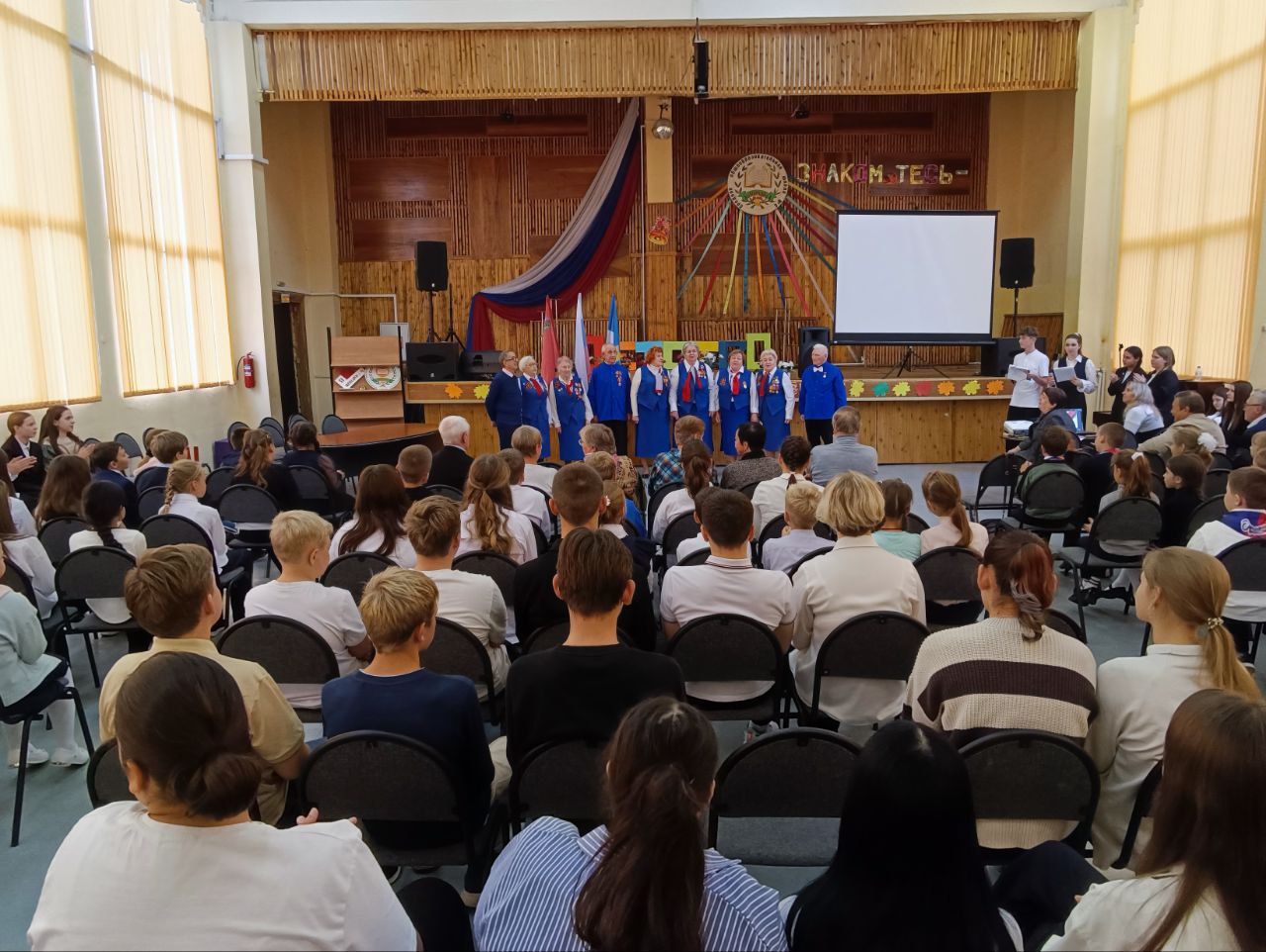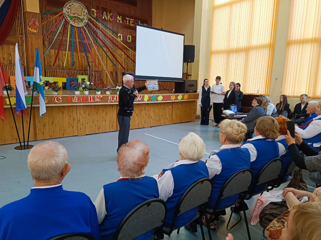 В этот день в актовом зале царила тёплая и дружественная атмосфера. Школьники выступали с яркими концертными номерами, дарили ветеранам свою заботу и внимание.